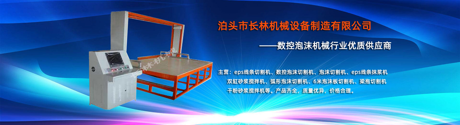 泊頭市長(zhǎng)(zhǎng)林機(jī)(jī)械設(shè)(shè)備制造有限公司座落于河北省泊頭市開發(fā)(fā)區(qū)(qū),地處北京、天津、濟(jì)(jì)南、石家莊中心位置。京滬高速、京滬鐵路、106國(guó)道、104國(guó)道穿行于本市,交通便利。 本公司是集多功能數(shù)(shù)控泡沫切割機(jī)(jī)的自主研發(fā)(fā)、生產(chǎn)(chǎn)、銷售和服務(wù)(wù)于一體的企業(yè)(yè),eps線條設(shè)(shè)備,數(shù)(shù)控泡沫切割機(jī)(jī),發(fā)(fā)泡陶瓷切割機(jī)(jī),eps線條切割機(jī)(jī)銷往全國(guó)各地,并開辟了國(guó)際合作的廣闊渠道。創(chuàng)(chuàng)新不斷的長(zhǎng)(zhǎng)林?jǐn)?shù)控機(jī)(jī)械有限公司經(jīng)(jīng)過(guò)幾年的不斷研究,完善了建筑裝飾構(gòu)(gòu)件的配套設(shè)(shè)備和自動(dòng)(dòng)化設(shè)(shè)備,由過(guò)去手工生產(chǎn)(chǎn)到半自動(dòng)(dòng)生產(chǎn)(chǎn)發(fā)(fā)展到現(xiàn)(xiàn)在的CNC控制的全自動(dòng)(dòng)零誤差數(shù)(shù)控泡沫切割機(jī)(jī)床。不但讓客戶在交貨期上面爭(zhēng)(zhēng)取了時(shí)(shí)間而且···